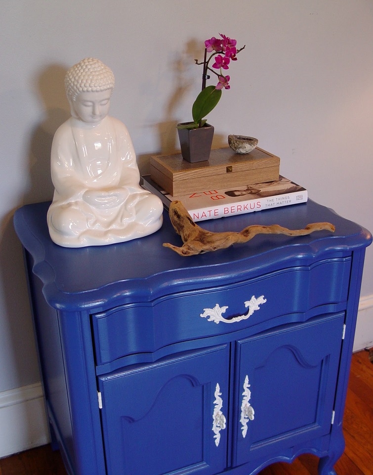 I decided to paint the cabinet a royal blue in honor of Nate's beautiful blue eyes.
